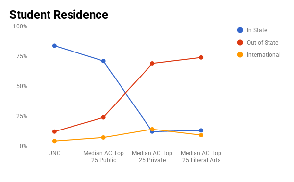 University of North Carolina-Chapel Hill (or UNC) was established in 1789, making it the first public school to be founded in the state. The campus is set in the suburbs on about 729 acres. The area is often considered one of the best college towns because of the many activities. With about 20,000 undergraduate and 11,000 postgraduate students, it has the second largest enrollment in North Carolina. The largest undergraduate school is the College of Arts and Sciences, while there are several graduate programs, including the Kenan-Flagler Business School, the School of Education, the Gillings School of Public Health, and Carolina Law.